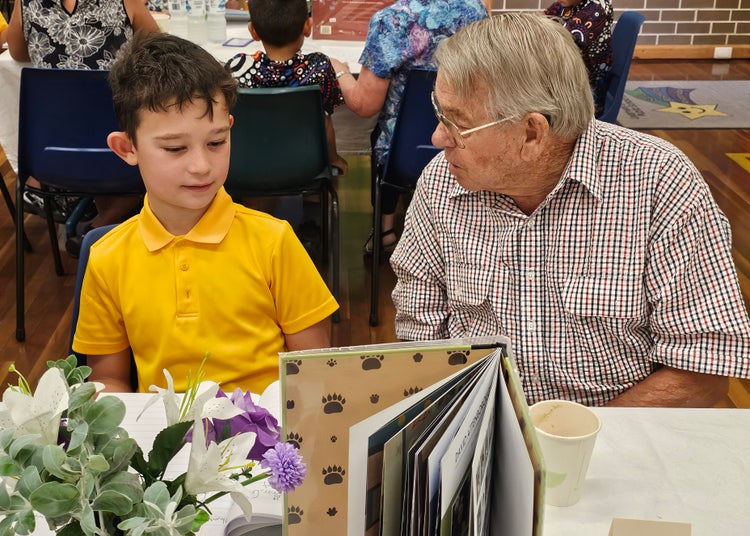 A group of Years 2,3 and 4 students participating in a Penpals program with a local Probus group. A visit to our school provided our students an opportunity to meet and interview the people they have been correseponding with by letters.